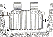 - Bedding (C) should be a well compacted sand/gravel mixture: 6'' minimum in soil terrain, 12" minimum in rock terrain.